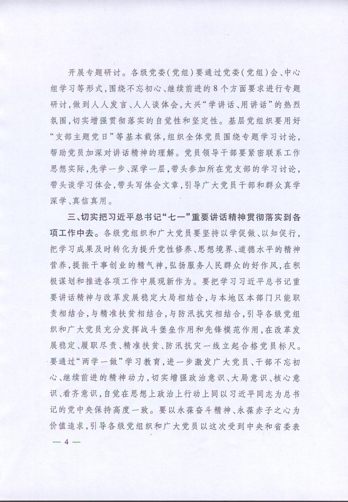 關于在“兩學一做”學習教育中認真貫徹習近平總書記“七一”重要講話精神的通知