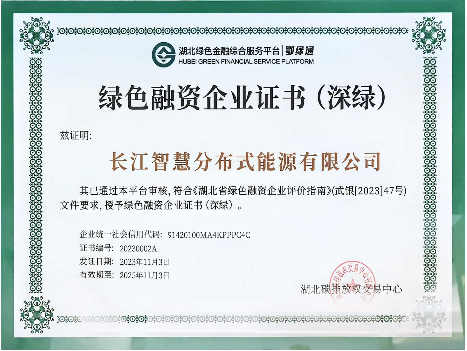 綠色融資企業(yè)證書